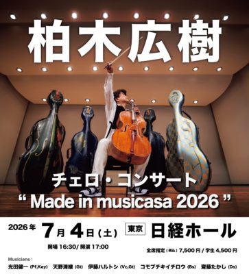 会場:【東京】日経ホール柏木広樹 チェロ・コンサート “Made in musicasa 2026”
