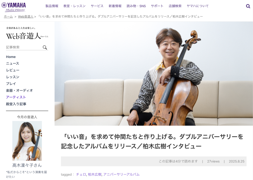 YAMAHA “Web音遊人” 柏木広樹 インタビュー掲載!
